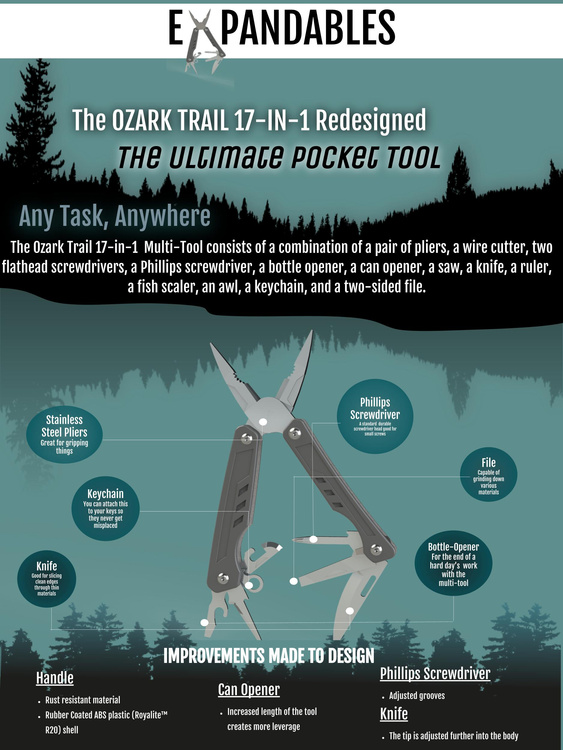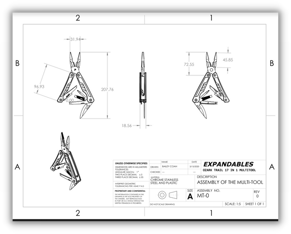 Examined the critical and desired functions through the disassembly of the multi-tool. Improved and added features to the current design through Solidworks AutoCAD.