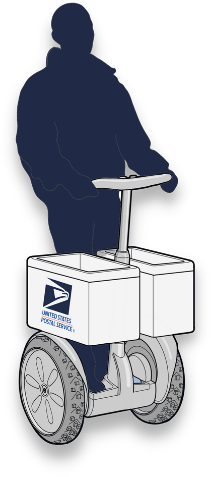 The Segway Commercial Mailway can be stored and charged by the new electric fleet of USPS Vehicles that will release in late 2023
